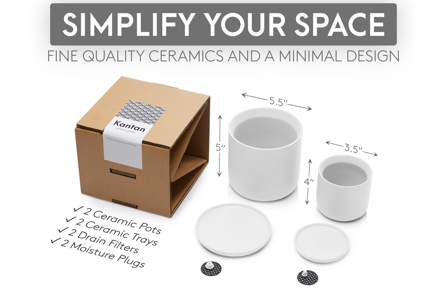 SIMPLIFY WHERE YOU OCCUPY: Clutter and busy things. They cloud our thoughts and tire us out. Everyone deserves a place to feel at peace. And everyone benefits from a space that feels inspiring! So, if you’re looking for clean lines and smooth designs in your home or office, Kantan has a range of minimalist office and home decor to simplify the space you occupy. Like this set of ceramic planters!